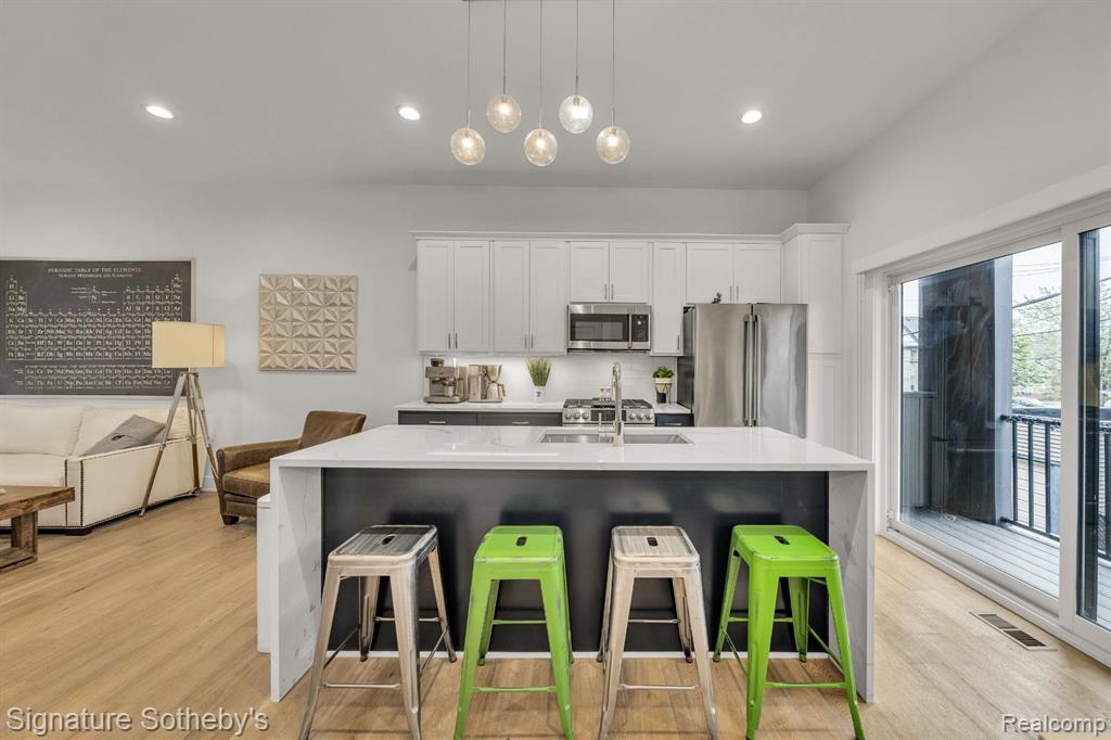 BACK ON THE MARKET DUE TO BUYER UNABLE TO COMPLETE FINANCING....Sophisticated townhouse condominium in the heart of historic Corktown. Premium builder upgrades throughout by esteemed Ferlito Construction in this like-new residence. Light, airy open floor plan. 9-10 foot ceilings throughout. Charming balcony off elegant eat-in kitchen. Sumptuous primary suite. Absolutely fabulous fourth story private patio with sweeping views of downtown, Corktown, the recently restored Michigan Central Train Station, and the bridges. This neighborhood arguably has the greatest investment potential compared to anywhere in the Midwest and this property is tucked right in the middle of it. Very easy access to everything one of the best cities in the world has to offer. |