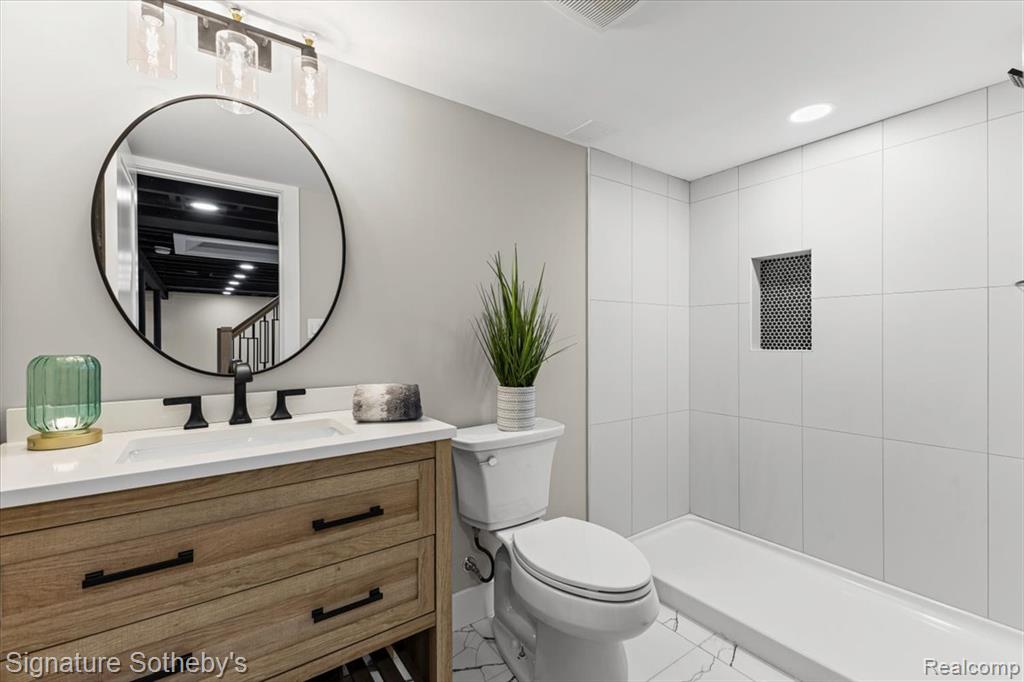 Completely transformed in 2025 (down to the studs): new roof, windows, siding, electrical, plumbing, driveway, patio, and every inch of the interior. Wide-plank white oak floors flow through an open-concept main level. The show-stopping kitchen features white shaker cabinets, a massive quartz waterfall island, stainless appliances, and marble backsplash. The living room centers on a sleek linear fireplace with dramatic wood-slat surround. Three bright and generous sized bedrooms. Luxurious bathroom with double vanity, deep tub, and custom blue-glass tile surround. The fully finished lower level adds a spacious family room, second full bath, laundry, and plenty of storage. Central Air. Fully fenced yard, 1 car garage, and large patio; perfect for entertaining. Quiet neighborhood and conveniently located. Close to all your favorite restaurants, shopping, nightlife, and major thoroughfares.