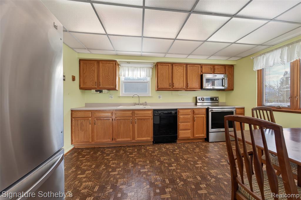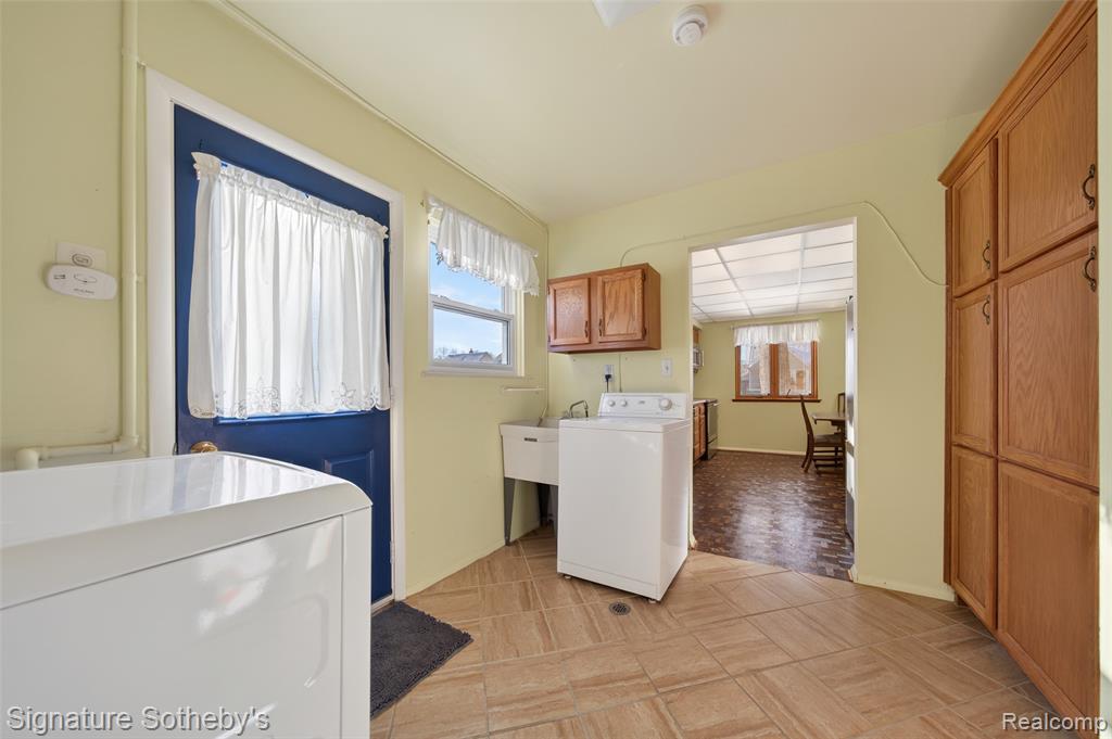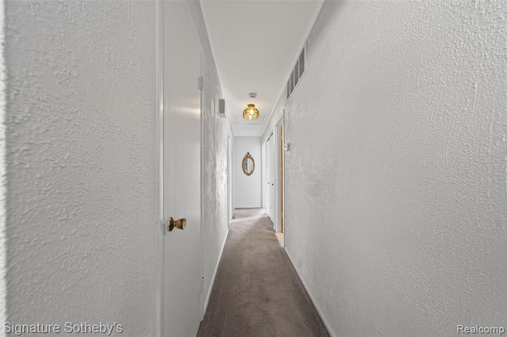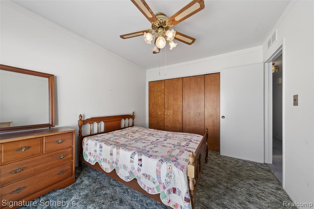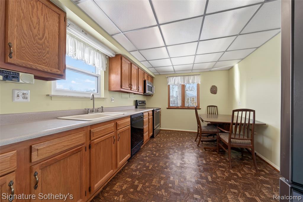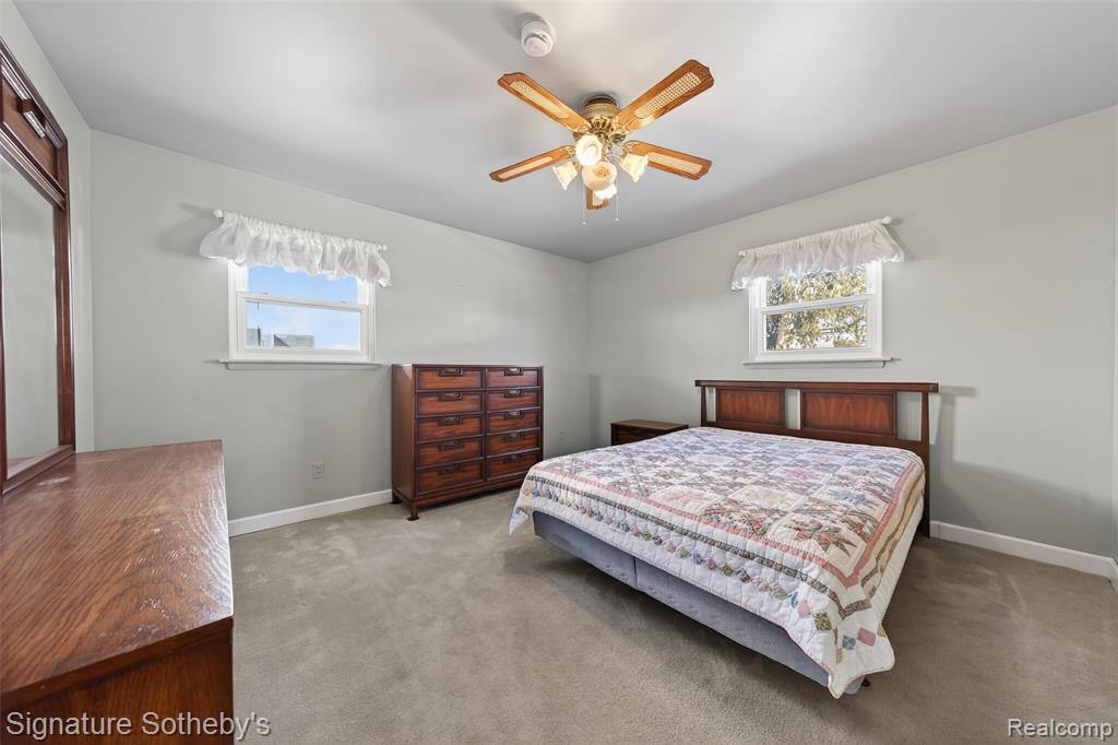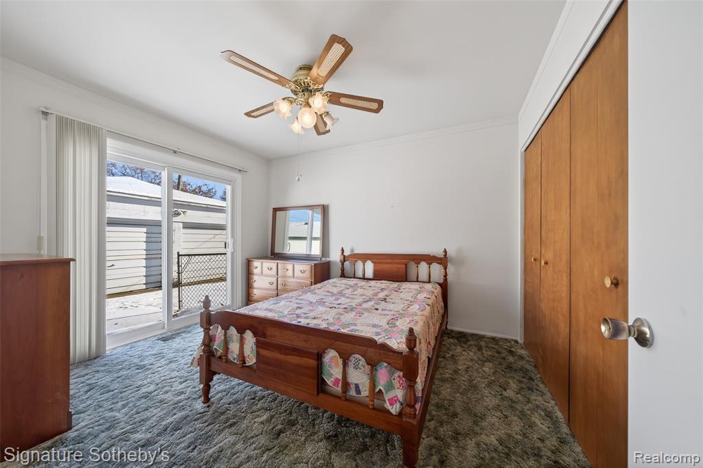 Lovingly maintained by long time owner, this mid-century ranch is a perfect starter or condo alternative! Enter into the spacious living room with neutral carpeting and built-in shelving. The kitchen offers oak cabinetry and plenty of dining space, and all the appliances are included. Conveniently located off the kitchen, the laundry room has a wall of built-in storage, including pull out drawers for your pantry items. Fantastic updated bathroom with neutral ceramic tile and decorative tile accents includes a double shower, seating, handrails, and a lovely sink/vanity and medicine cabinet. Enter into the bedroom hallway and you will find a coat closet, large linen closet, and an attic fan for those not-so-hot days. Nice sized bedrooms all have lighted ceiling fans, and the primary has a very large closet and vinyl doorwall leading to the backyard. Great location just a short stroll to restaurants, shops, and everything Berkley has to offer! |